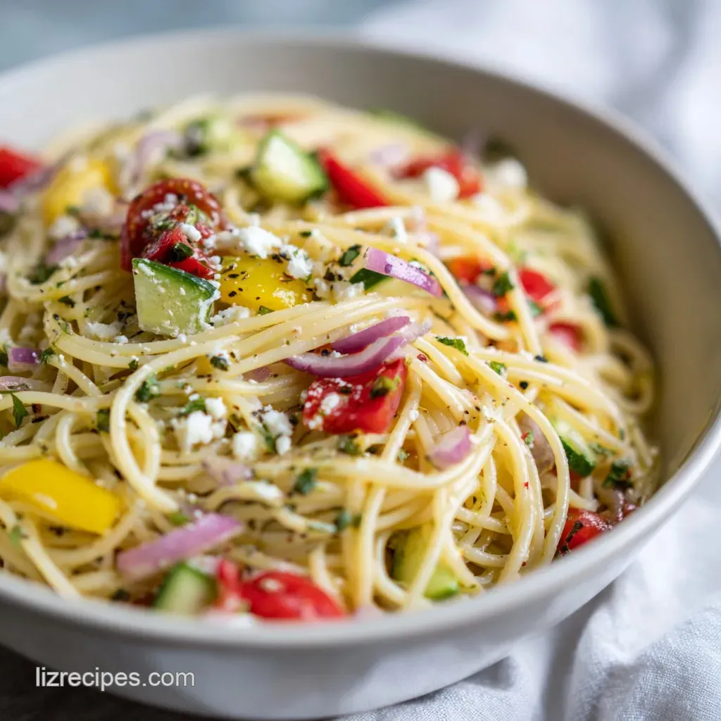 No, this is a common misconception. Standard spaghetti is necessary because it possesses the structural integrity required to hold the weight of the cherry tomatoes, cucumbers, and peppers without turning to mush.